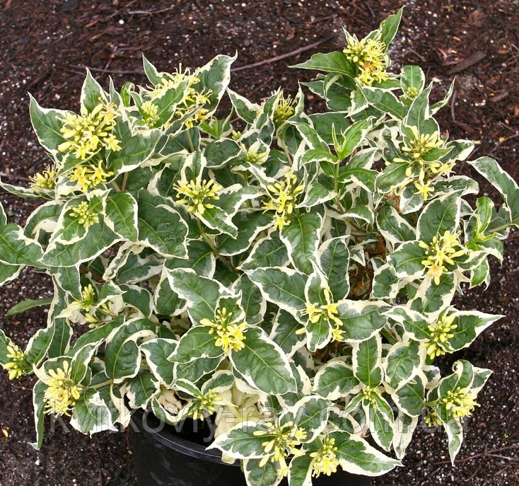 Саженцы кустарника Кул Сплэш (Cool Splash) позволят украсить или дополнить различные зеленые зоны. Это растение обладает густой листвой бело-зеленого окраса, которая является лучшим украшением и отличительной особенностью. В период с июня по август цветет мелкими желтыми цветами, не имеющими особой декоративной ценности. Плодоношение в сентябре коробочками с семенами. Кустарник отлично растет на теневых площадках.