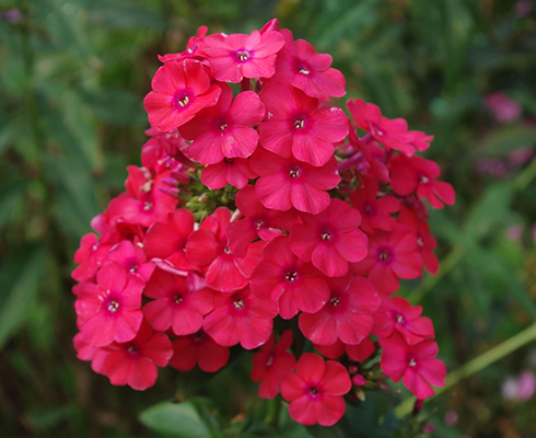 Рассада флокса метельчатого Мисс Мари (Miss Mary) наполнит сад очень привлекательными пышными соцветиями и ярко-зелеными компактными кустами, которые неплохо смотрятся в клумбах контейнерного типа. Цветки у растения красно-малиновые с небольшим сиреневым колечком в центре. Подходят для срезки в букеты, но цвет их становится сиреневато-красным. Сорт флокса метельчатого Мисс Мэри отличается высоким уровнем зимостойкости. Обладает тонким ароматом. Размножается любым способом, в том числе и семенами. Для посадки лучше выбирать хорошо плодородные и умеренно увлажненные почвы.
