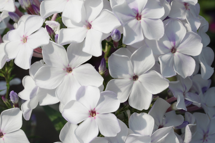 Рассада флокса метельчатого Жуковский порадует привлекательной окраской соцветий и их нежным ароматом. Крупные цветы состоят из белых лепестков, на поверхности которых проступают сиренево-фиолетовые штрихи. Этот изящный сорт подходит для одиночных и групповых посадок.