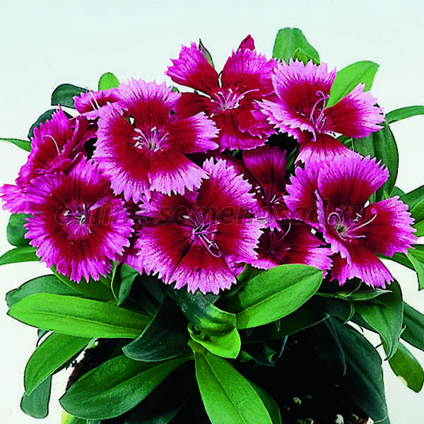 Гвоздика Chiba Crimson Picotee - это удивительное растение с фиолетовыми цветками, которые радуют глаз своей красотой. Ее стебель достигает высоты 20-25 см, что делает ее идеальным выбором для групповых посадок. Листья этой гвоздики имеют привлекательную форму и размер, что придает растению особый шарм.
