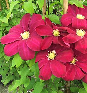 Саженцы клематиса гибридного Хоши-но-фламенко (Hoshi-No-flamenco) подходят для выращивания в открытом грунте и цветочных контейнерах. Для посадки саженцев подходят солнечные, защищенные места, с плодородной почвой. Цветет клематис гибридный Хоши-но-фламенко (Hoshi-No-flamenco)обильно с мая по июнь. Цветки диаметром 15-17 см, бархатистые пурпурно-красные, с поникающими кончиками лепестков. Используется как в одиночных, так и групповых посадках, для озеленения решеток, арок, террас и других садовых конструкций.