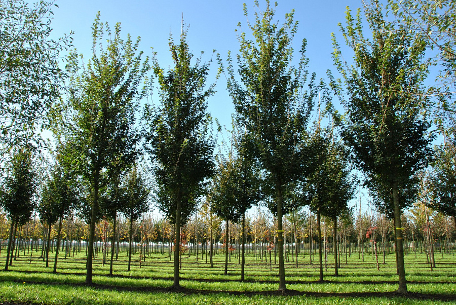 Саженцы клена полевого Квин Элизабет (Queen Elizabeth) вырастают в роскошные тенистые деревья с широкими округлыми кронами и выносливыми корневыми системами. Высота взрослых крупномеров достигает 10-12 м. Крона дерева очень широкая, иногда даже равняется его высоте. Закругленные листья летом светло-зеленые, осенью живописно желтеют. Цветет клен полевой Квин Элизабет желтыми щитковидными соцветиями.