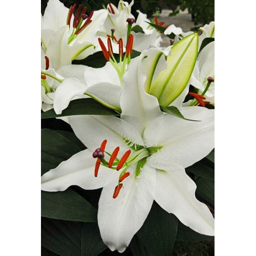 Лилия восточная горшечная шир блонд - это изысканное растение, которое поразит вас своей красотой и изяществом. Ее белые цветы с насыщенно-оранжевыми пыльниками создадут неповторимый акцент в вашем саду. Лилия имеет прочный ствол и достигает впечатляющих размеров до 17 см. Форма листьев лилии восточной горшечной шир блонд очень изящна и элегантна, что придает растению особый шарм.