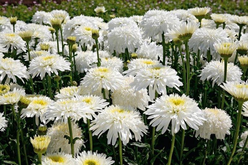 Рассада нивяника наибольшего Фиона Гохилл (Fiona Goghill) прекрасно смотрится в групповых посадках с другими растения такой же высоты и периода цветения. Цветки у этого растения густомахровые на прочных, но тонких стеблях. Именно поэтому их часто используются для срезки в подарочные букеты. Тонкие вытянутые лепестки белые, с кремово-желтой серединкой. Семена нивяника наибольшего Фиона Гохилл хорошо прорастают. Цветение начинается с июня месяца и может продолжаться до конца августа. Растение предпочитает яркое солнце или легкую полутень, а также умеренный полив в жаркие дни.