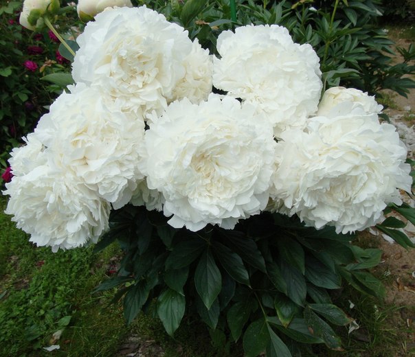 Пион сорта Ann Cousins (Энн Казенс) характеризуется наличием махровых больших розовидных цветов диаметром до 20 см. Они плотные чисто-белого цвета с приятным сильным ароматом. Лепестки большие, а общая высота кустарника достигает 90 см. Его стебли сильные но иногда сгибаются под тяжестью цветов. Растет пион медленно и цветет очень поздно. У цветов совсем нет тычинок и пестиков, но есть боковые бутоны. Кустарник имеют темную пышную листву под стать цветам. Куст активно растет, поэтому для цветов важна дополнительная поддержка. С каждым годом на пионе распускается все больше цветов, он становится прекрасным украшением для садового участка.
