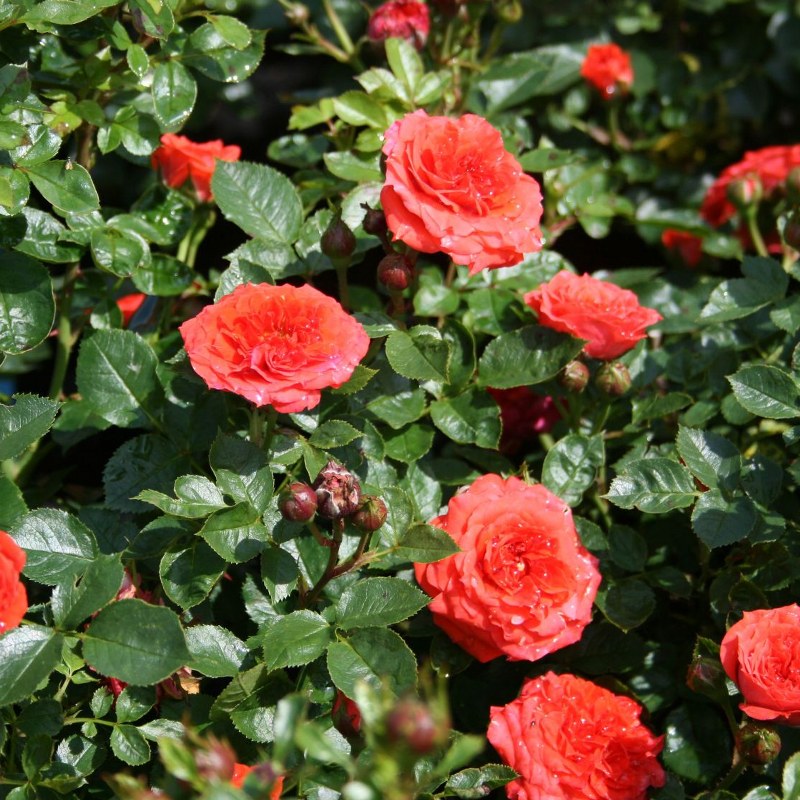 Листья розы Ориндж Джувел зеленые летом и желтые осенью, что придает растению особый шарм в любое время года. Это растение отлично переносит морозы до -25 градусов, поэтому не стоит беспокоиться за его зимнюю выносливость.