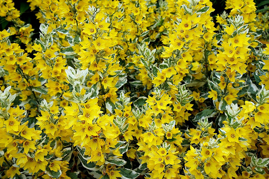 - Куст декоративен и вне периода цветения благодаря пестрой листве – несколько удлиненные листья окрашены в зеленый цвет, край же листа белоснежный.