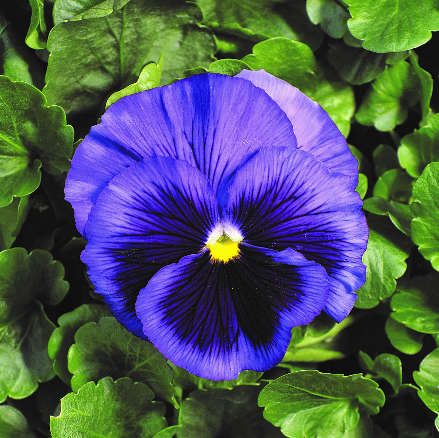 Виола крупноцветковая "Маммот Блу-Ти-Фул" - это настоящее чудо природы, которое поразит вас своей красотой и изяществом. Это растение отличается высокими декоративными качествами и неповторимым черно-синим оттенком цветков, размер которых достигает 7-9 см. Высота растения составляет 15-20 см, что делает его идеальным выбором для групповых посадок в солнечных и полутенистых местах.